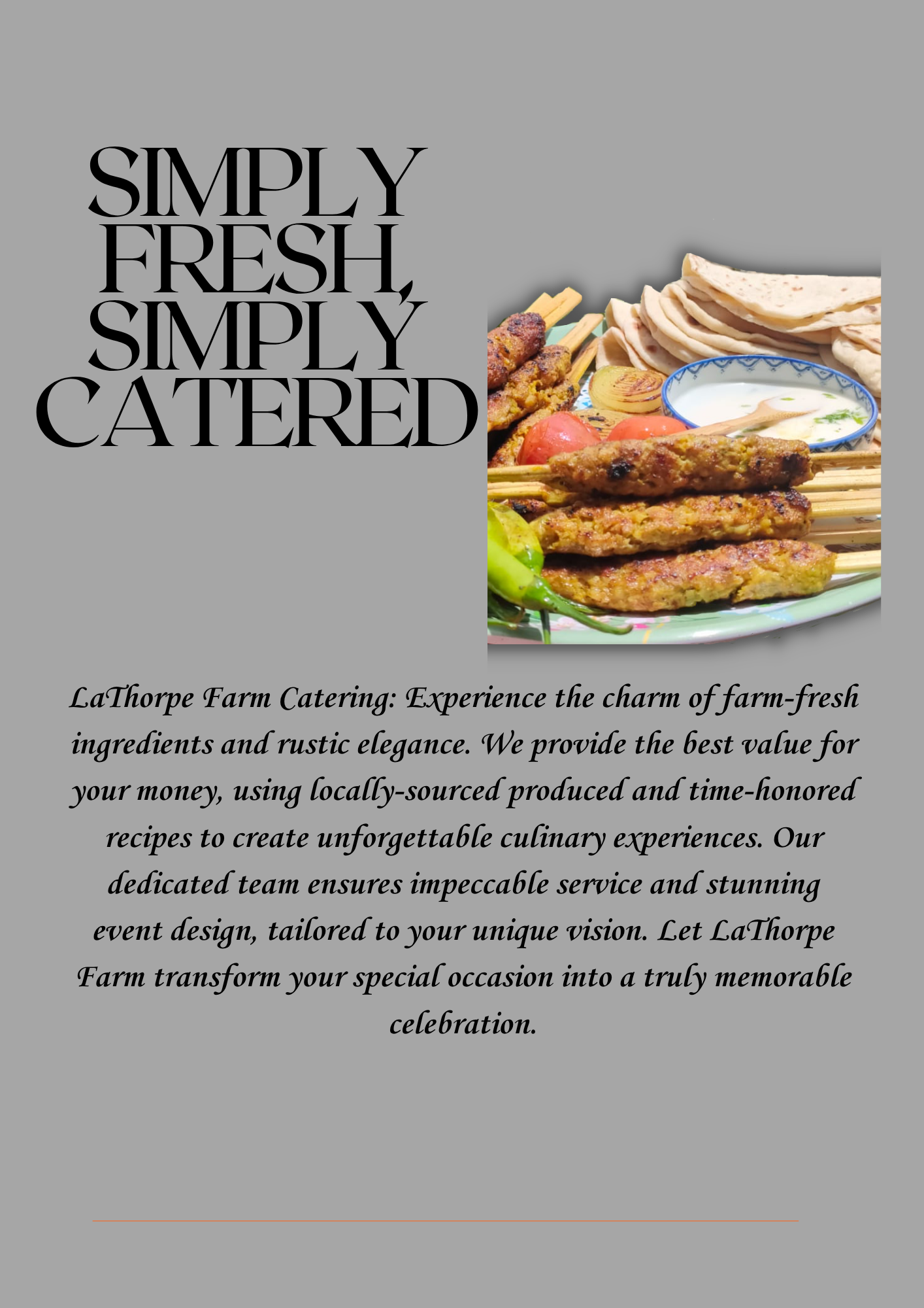 Delicious meals prepared with fresh ingredients, delivered or served at your events.