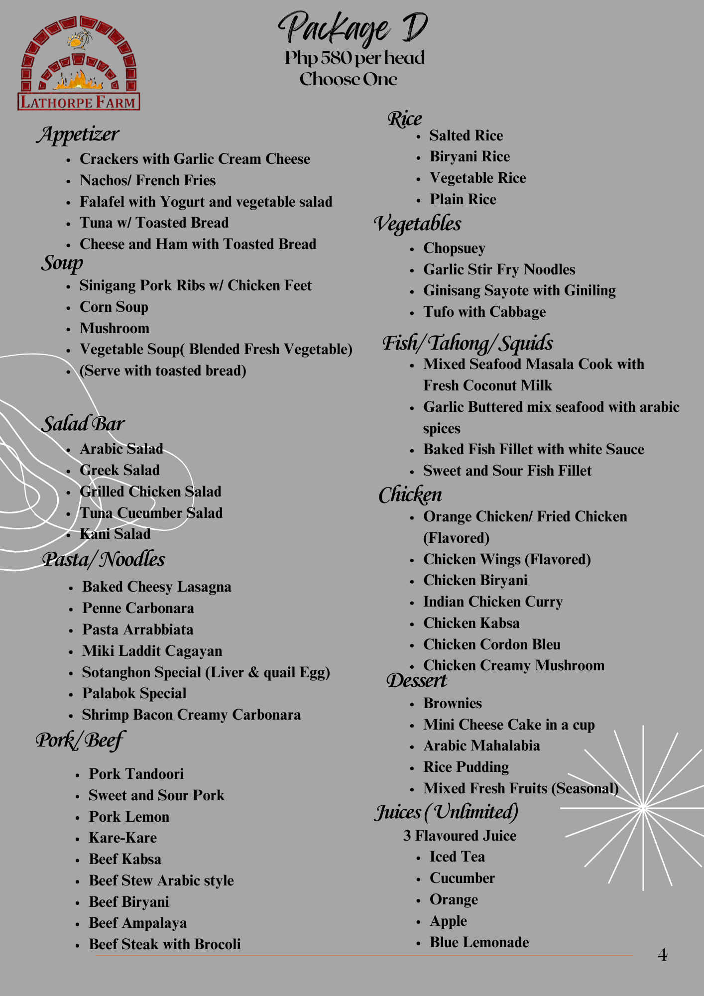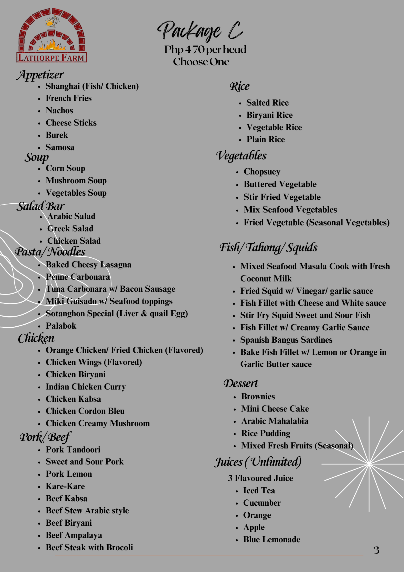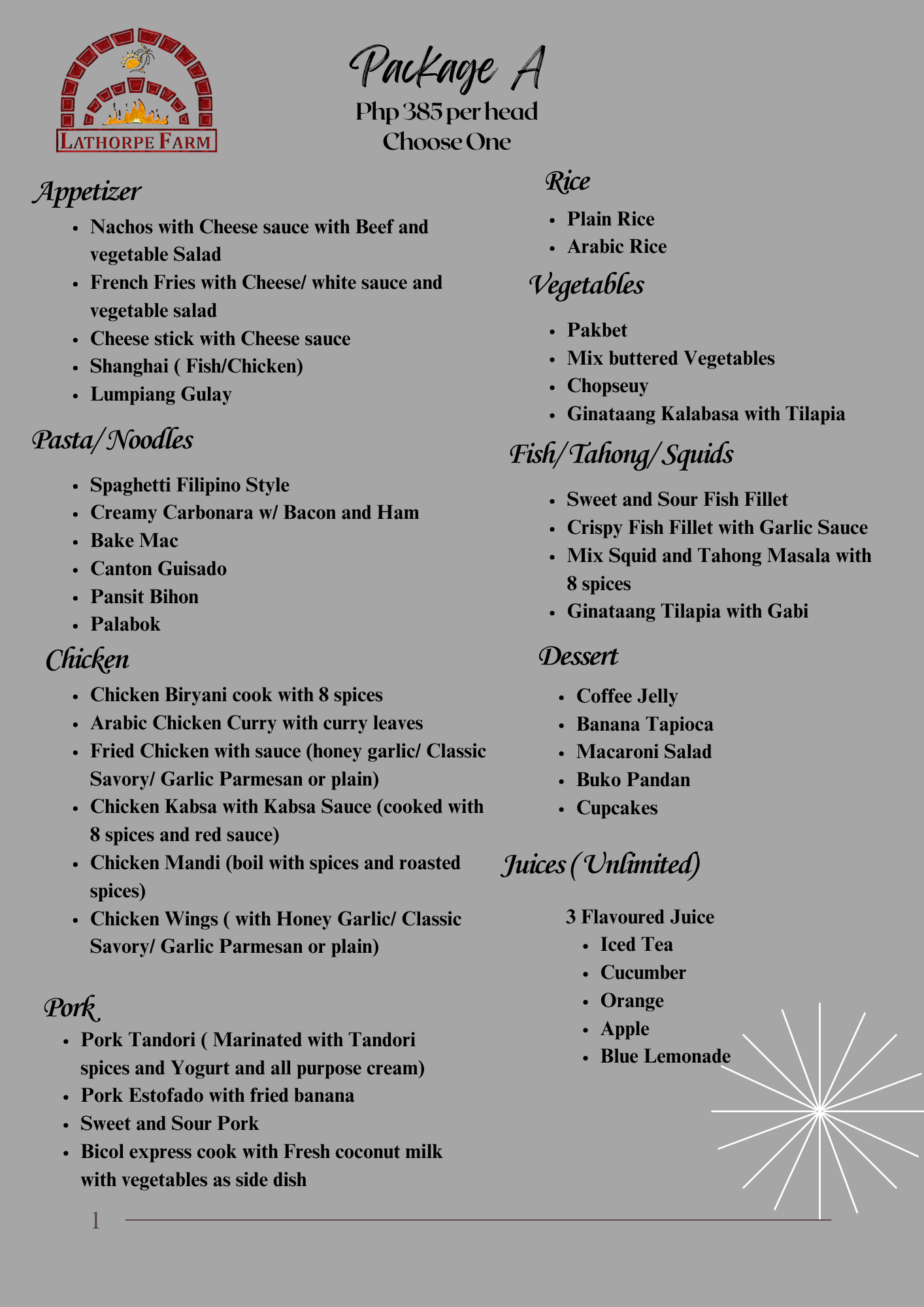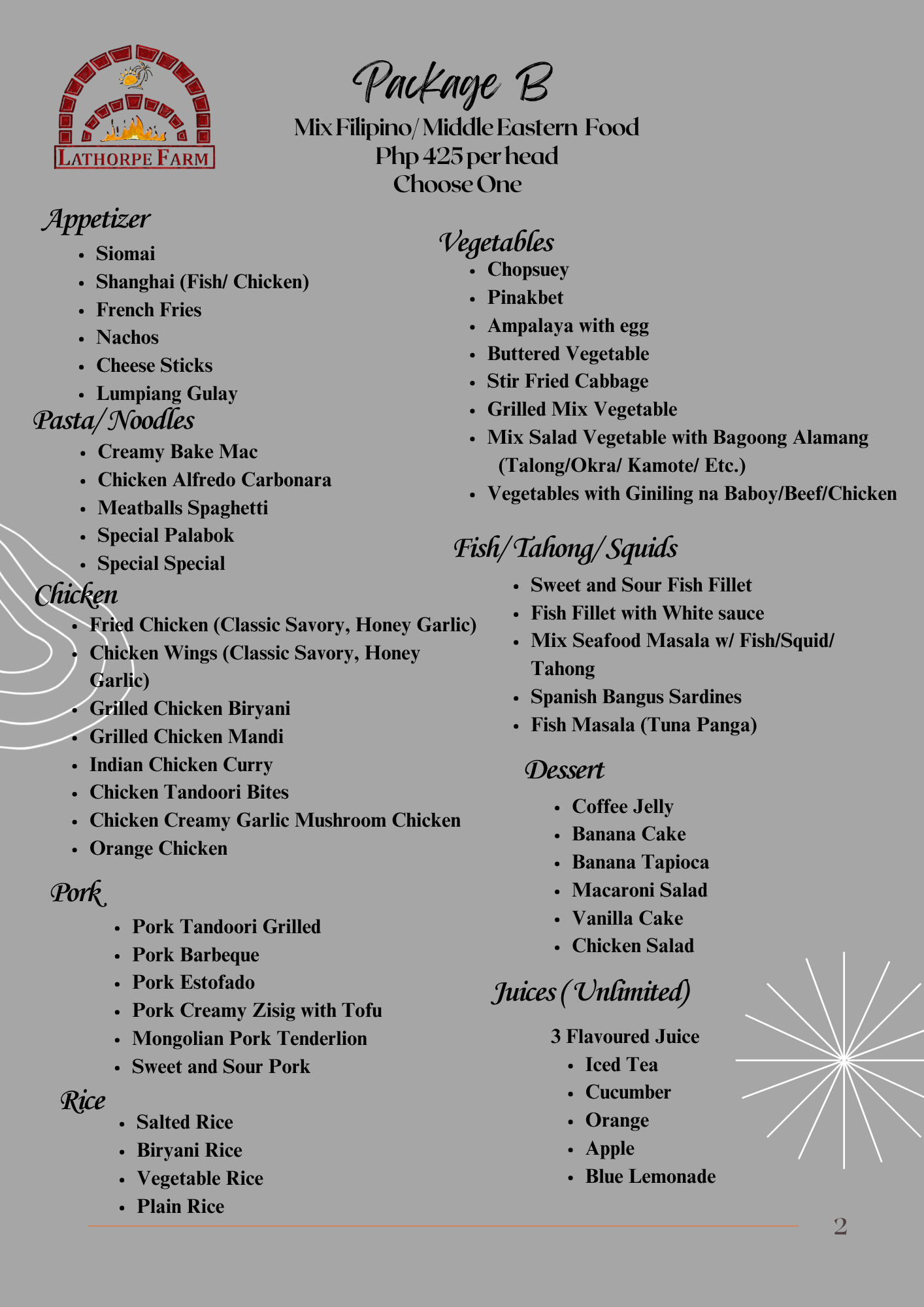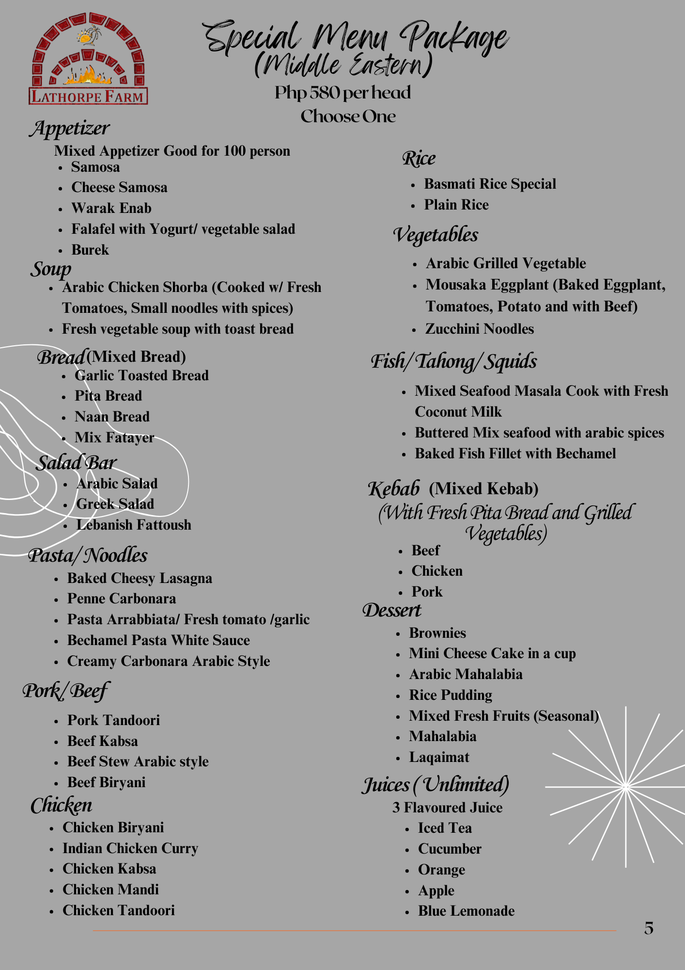 At La Thorpe Farm, savor our signature biryani made with rich spices and premium ingredients, alongside freshly baked pizzas, kebabs, and kabsa. Perfect for dine-in and catering for every special occasion.